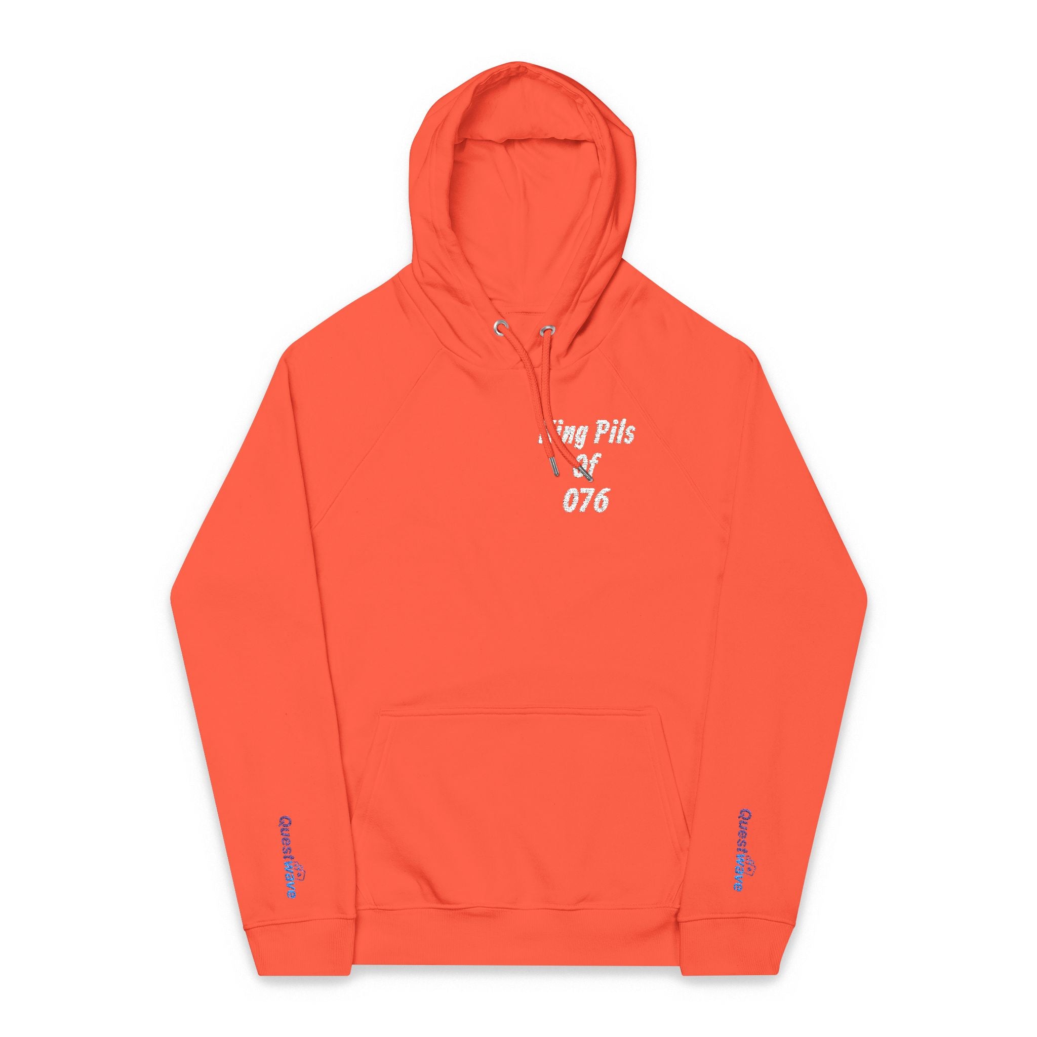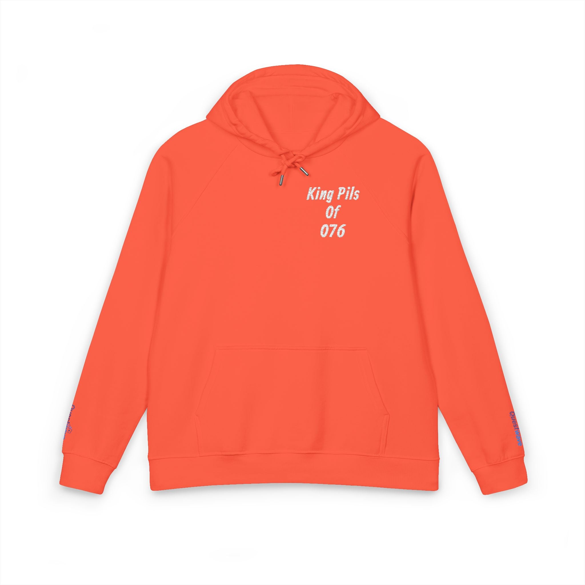 When you order this, it will be made to order. It will be custom made for each order.) - Celebrate hometown pride with a sustainably made raglan hoodie that feels lived-in from the first wear. The soft, brushed lining and jersey-lined hood wrap you in quiet warmth while the embroidered "King Pils of Example 076" motif (customizable city code) adds handcrafted character — like a vintage pennant updated for modern streets. Raglan sleeves and a regular fit give relaxed movement, whether you’re wandering festival routes, grabbing coffee before a market, or joining friends for Koningsdag gatherings. The muted eco-friendly fabrics and subtle embroidery let the design speak without shouting. Wear it on cool spring mornings, while cheering at local parades, or when you want a comfortable, conscious layer that hints at hometown stories.