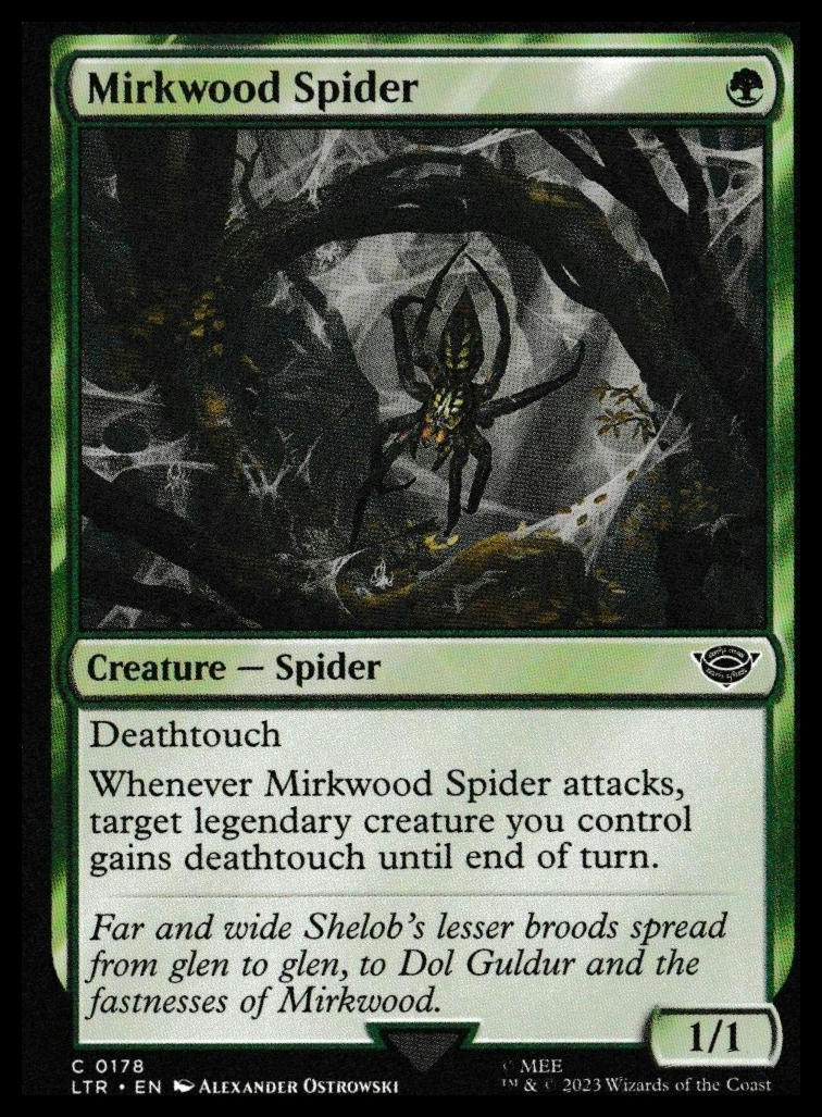 This is a nice example of a Universes Beyond: The Lord of the Rings: Tales of Middle-earth #178 Mirkwood Spider Other important information about this card:CommonIn 2023 Mirkwood Spider played for the .Please check out our other listings for more great cards.