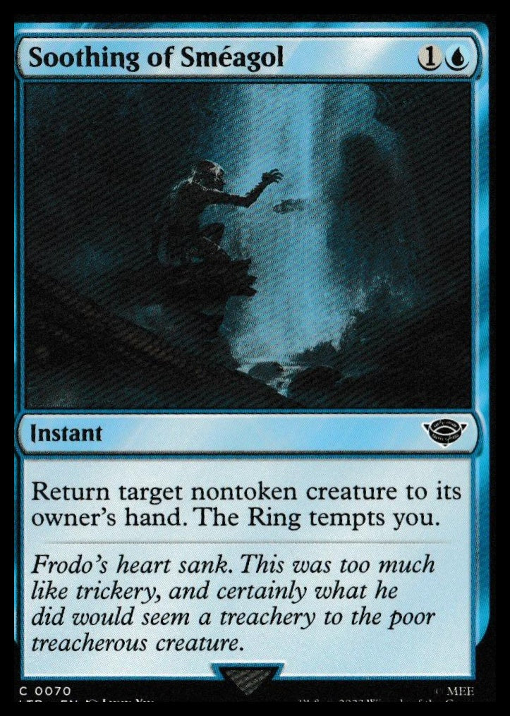 Universes Beyond: The Lord of the Rings: Tales of Middle-earth #70 Soothing of Smeagol . Lightly played Other important information about this card: Common2023 Soothing of Smeagol played for the .Please check out our other listings for more great cards.